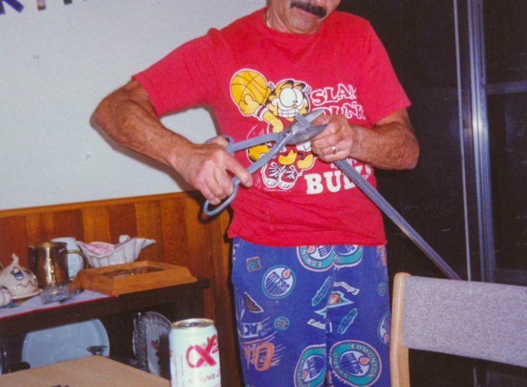 They together had a long, loving marriage of 64 years. My fondest memory is of the two of them dancing in the kitchen to the "The Log Drivers Waltz". He was outgoing and friendly to all he met and we could never go anywhere without him running into someone he knew (no matter what country we were in). In his free time, he would often be found at the outdoor rink at Grant Road school where he spent many hours playing hockey. Always loving the outdoors, he spent as much time as he could outside in the sun, doing crazy dives at Massey Pool, or rollerblading, cycling, playing badminton, hunting and fishing. If he wasn't outside he was in his garage tinkering on cars or fixing any number of things. He was very happy to be Canadian and loved his life here.