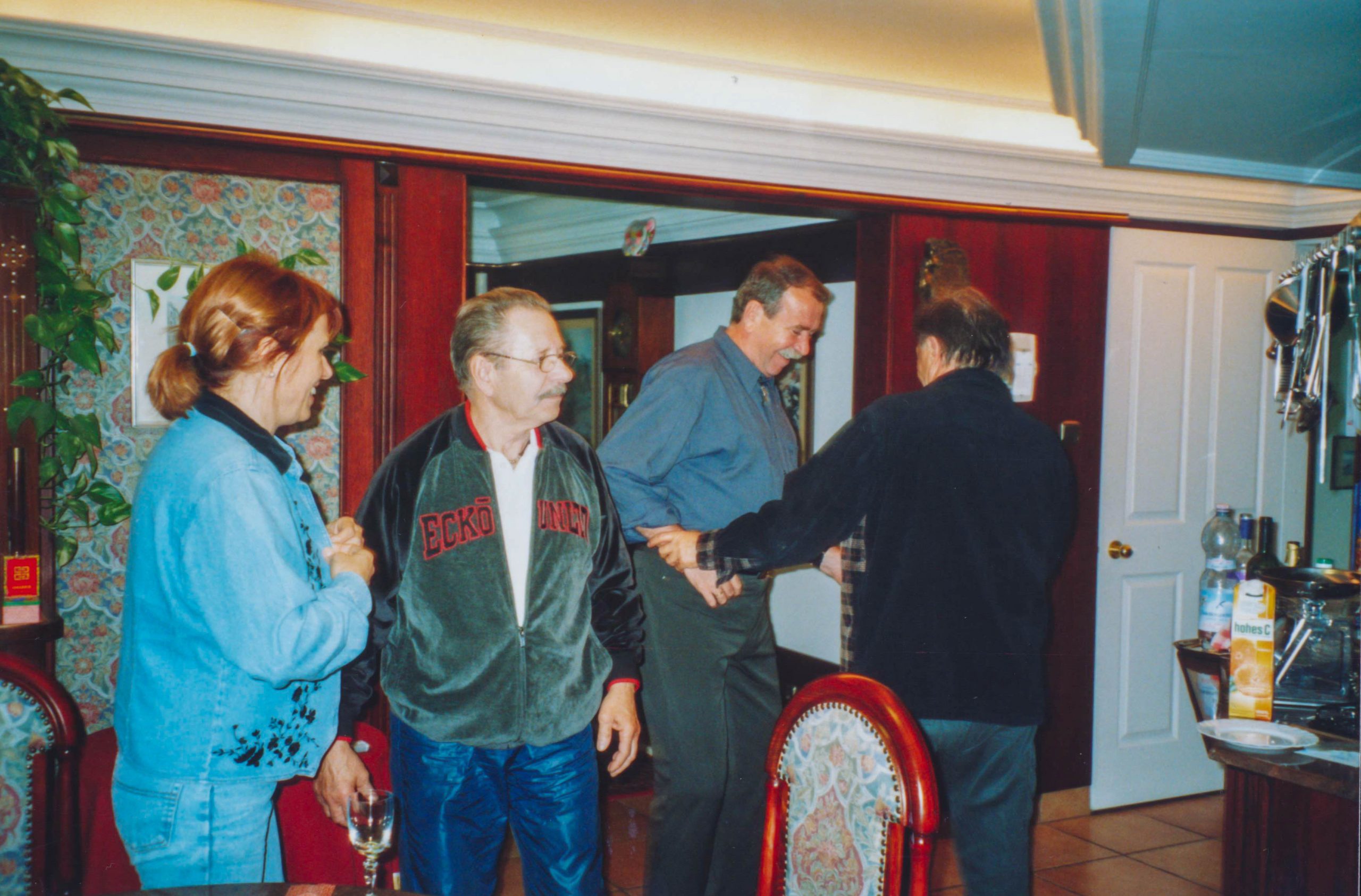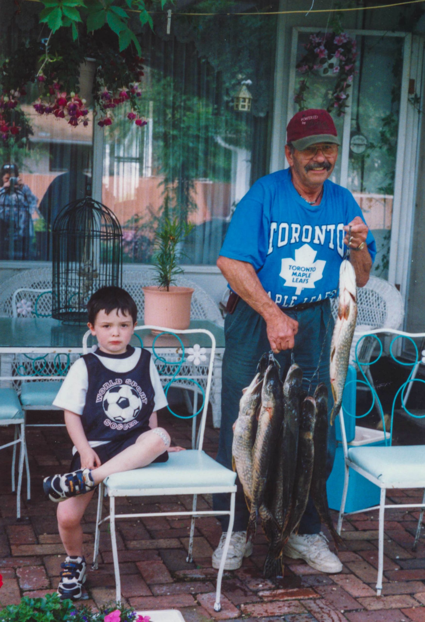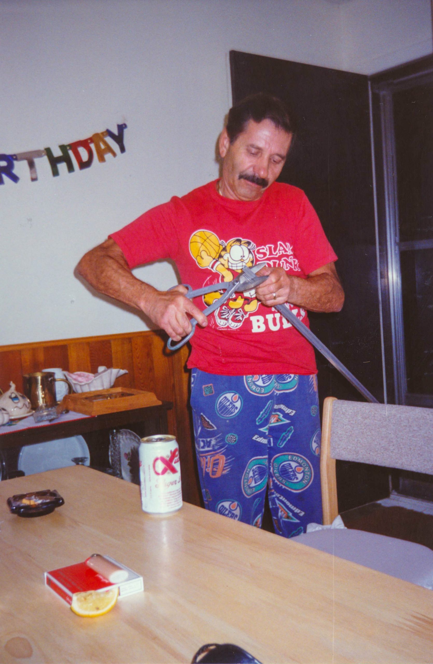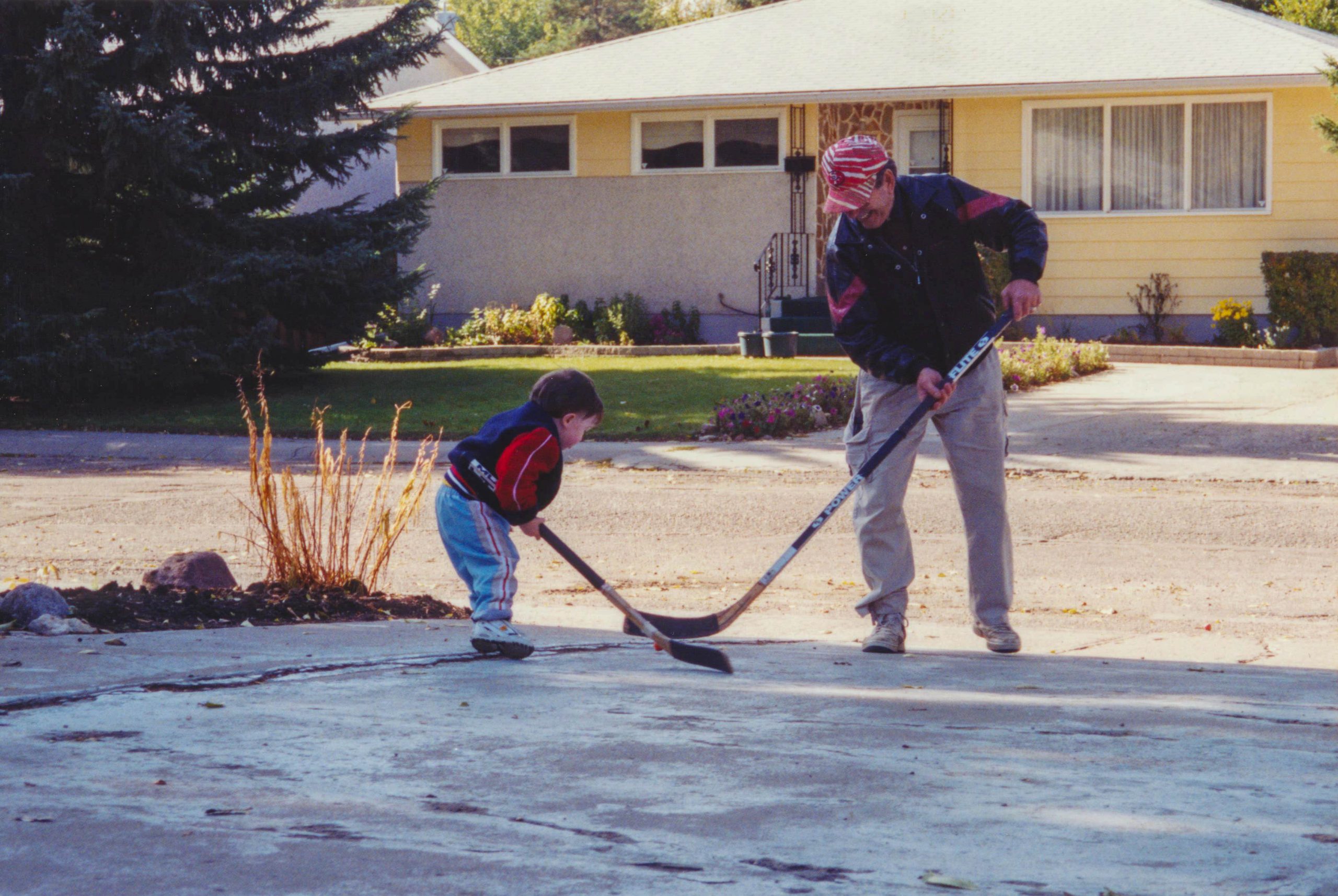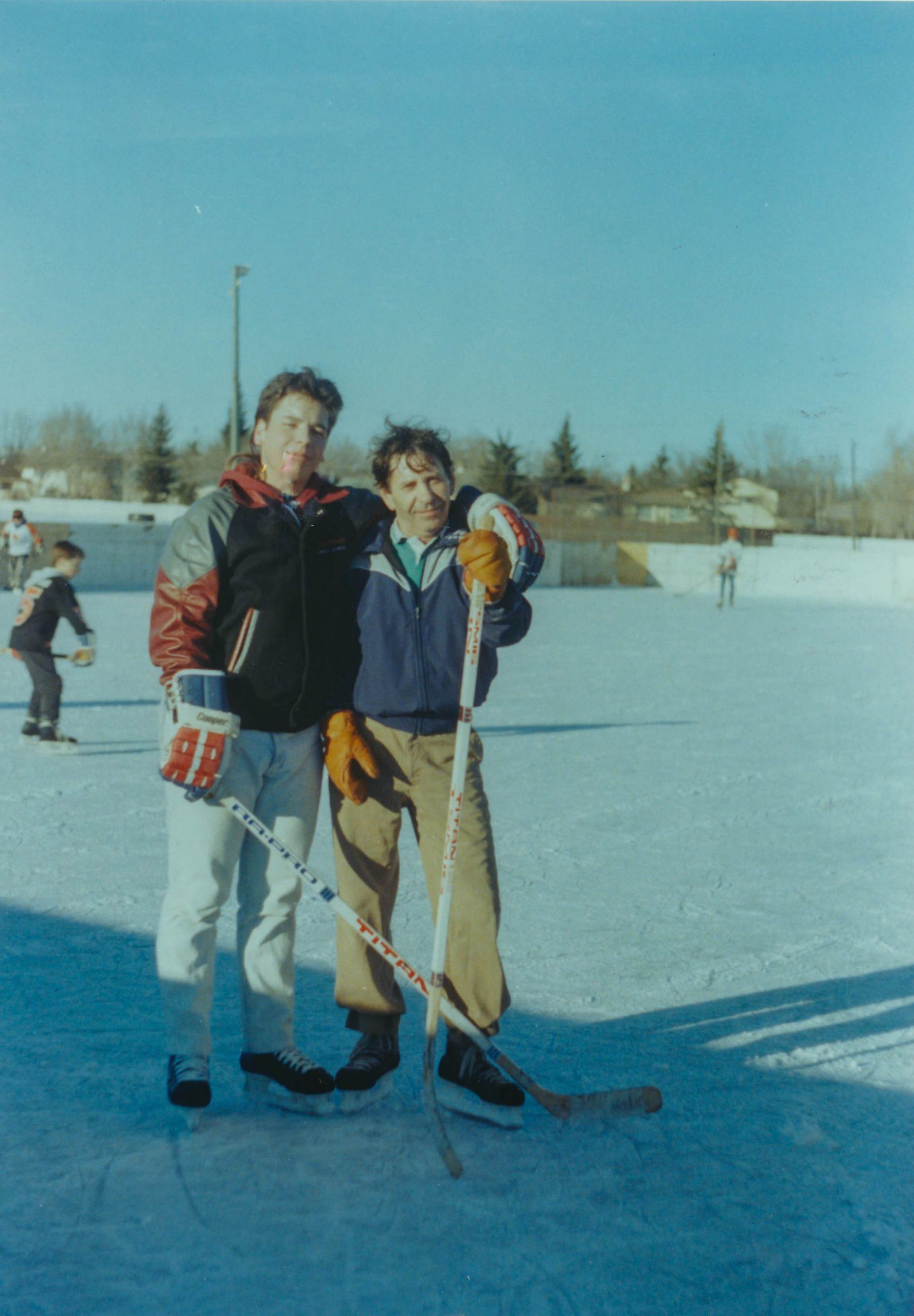 They together had a long, loving marriage of 64 years. My fondest memory is of the two of them dancing in the kitchen to the "The Log Drivers Waltz". He was outgoing and friendly to all he met and we could never go anywhere without him running into someone he knew (no matter what country we were in). In his free time, he would often be found at the outdoor rink at Grant Road school where he spent many hours playing hockey. Always loving the outdoors, he spent as much time as he could outside in the sun, doing crazy dives at Massey Pool, or rollerblading, cycling, playing badminton, hunting and fishing. If he wasn't outside he was in his garage tinkering on cars or fixing any number of things. He was very happy to be Canadian and loved his life here.